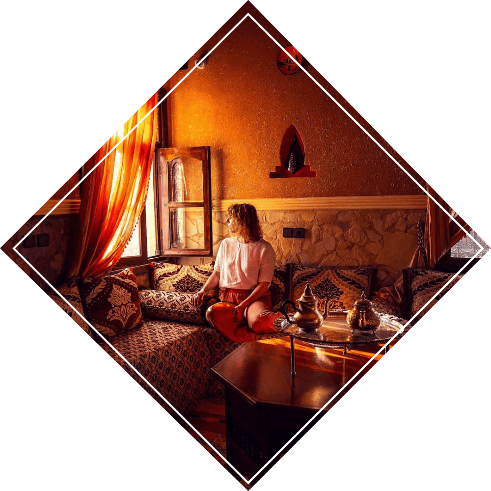 Discover Riad Chay and uncover your favorite spot. Enjoy tea in one of the stunning courtyard lounges, featuring lofty ceilings and Moroccan stucco. The Riad becomes your sanctuary during your memorable stay. Whether you’re mingling with new acquaintances or seeking solitude, you’ll undoubtedly discover a space as distinctive as you are.